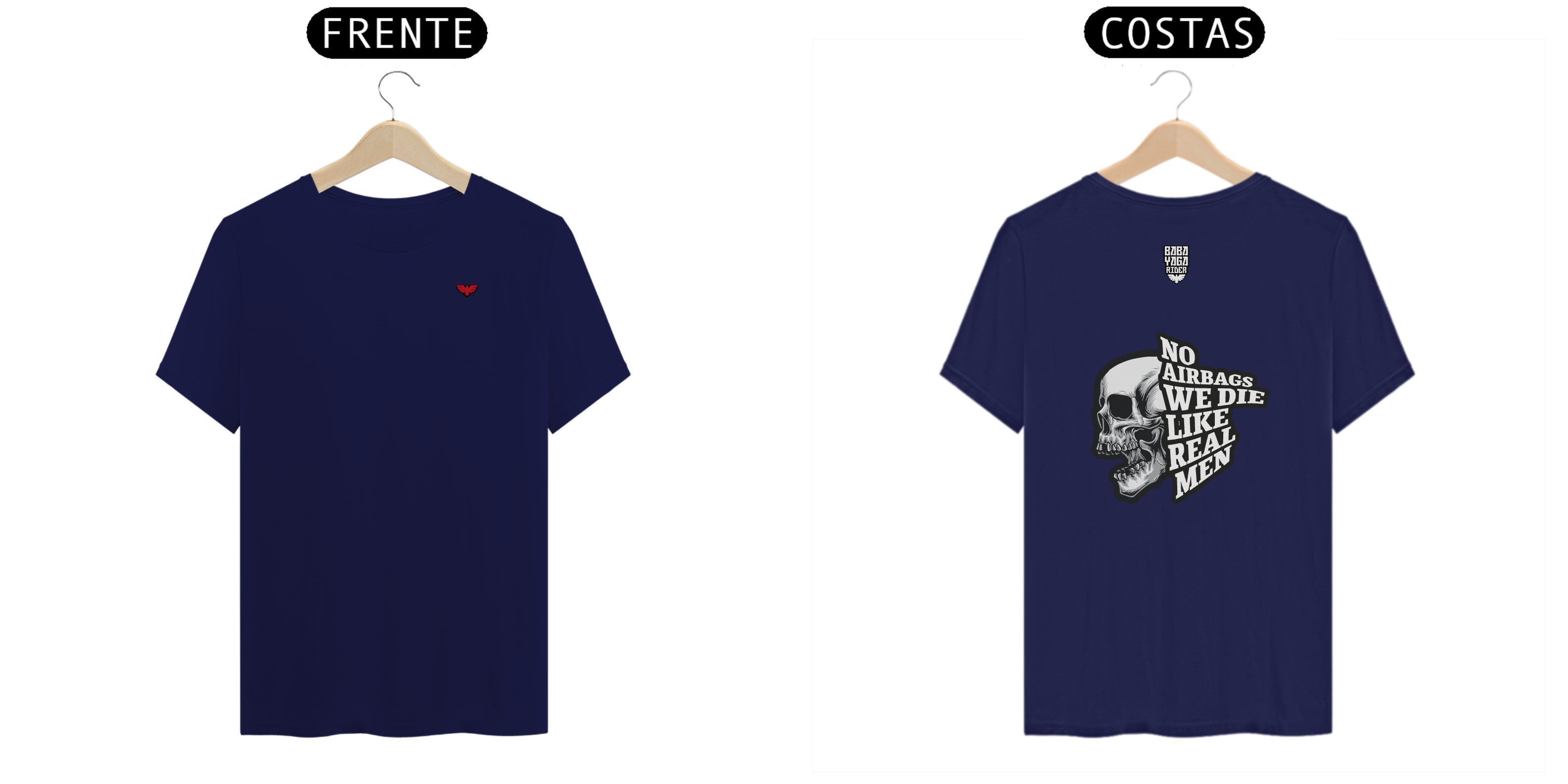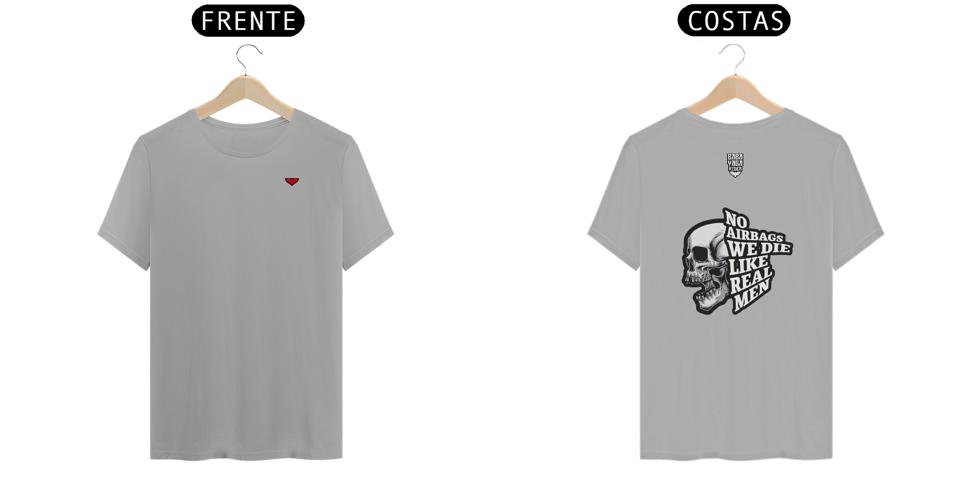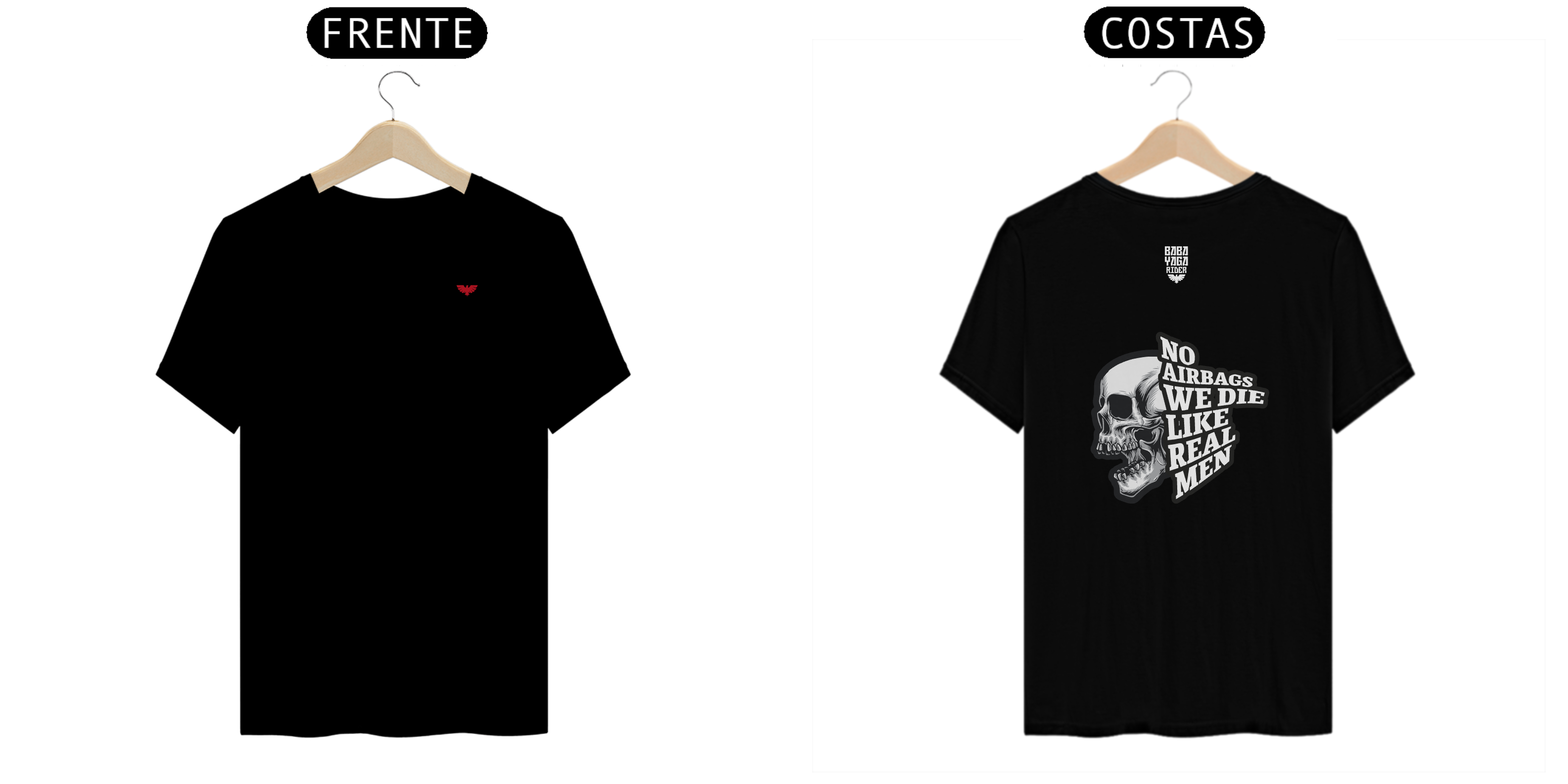 Para os motociclistas de verdade e amantes da estrada que vivem intensamente, esta camiseta expressa o espírito indomável e a bravura dos que escolhem o caminho sem garantias. A estampa impactante com o crânio e o lema "No Airbags, We Die Like Real Men" é um símbolo de força, liberdade, igualdade e autenticidade. Confeccionada em algodão de alta qualidade, essa peça é perfeita para quem quer se destacar com estilo e atitude. Vista seu orgulho de ser parte da cultura biker!