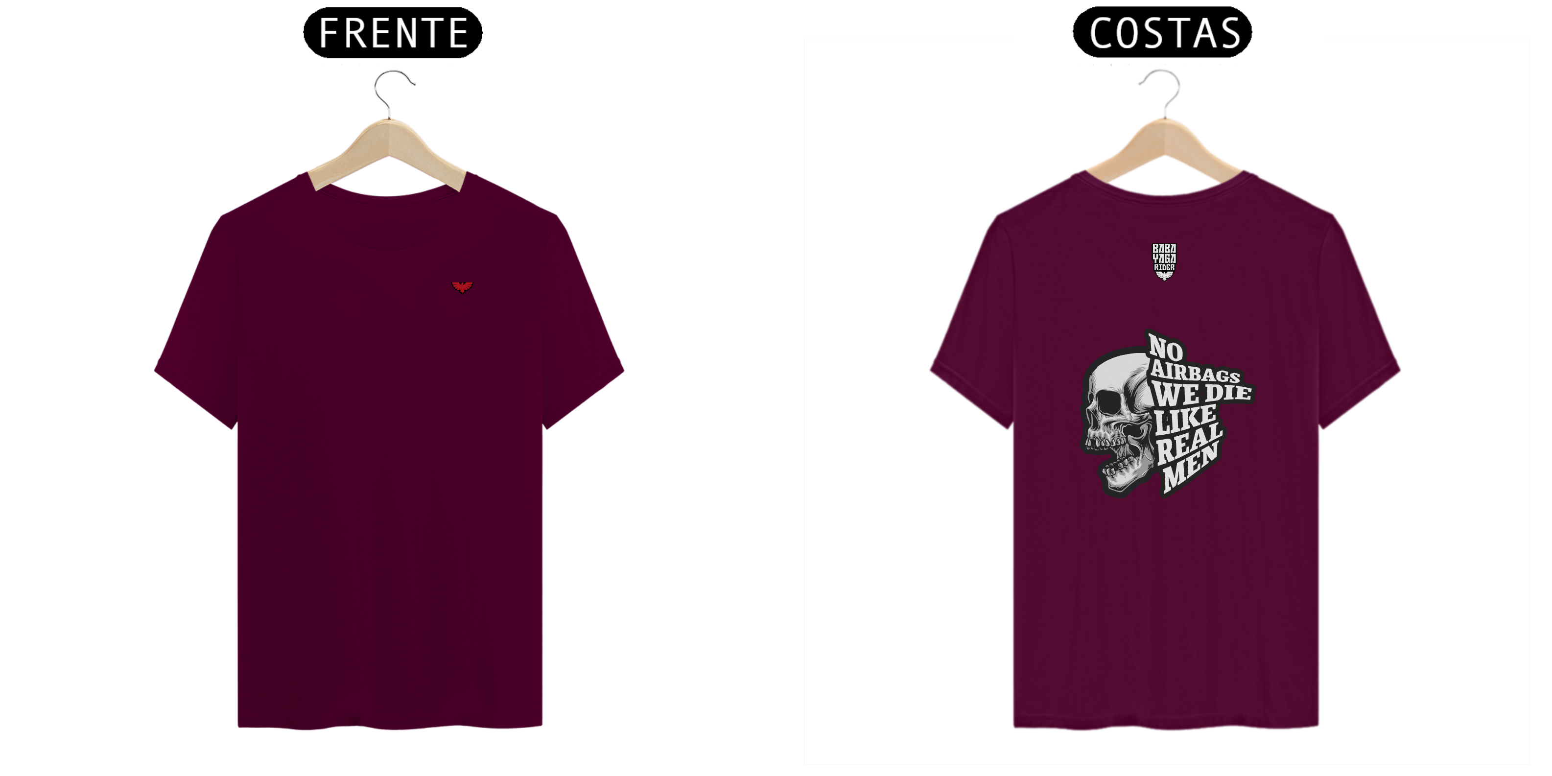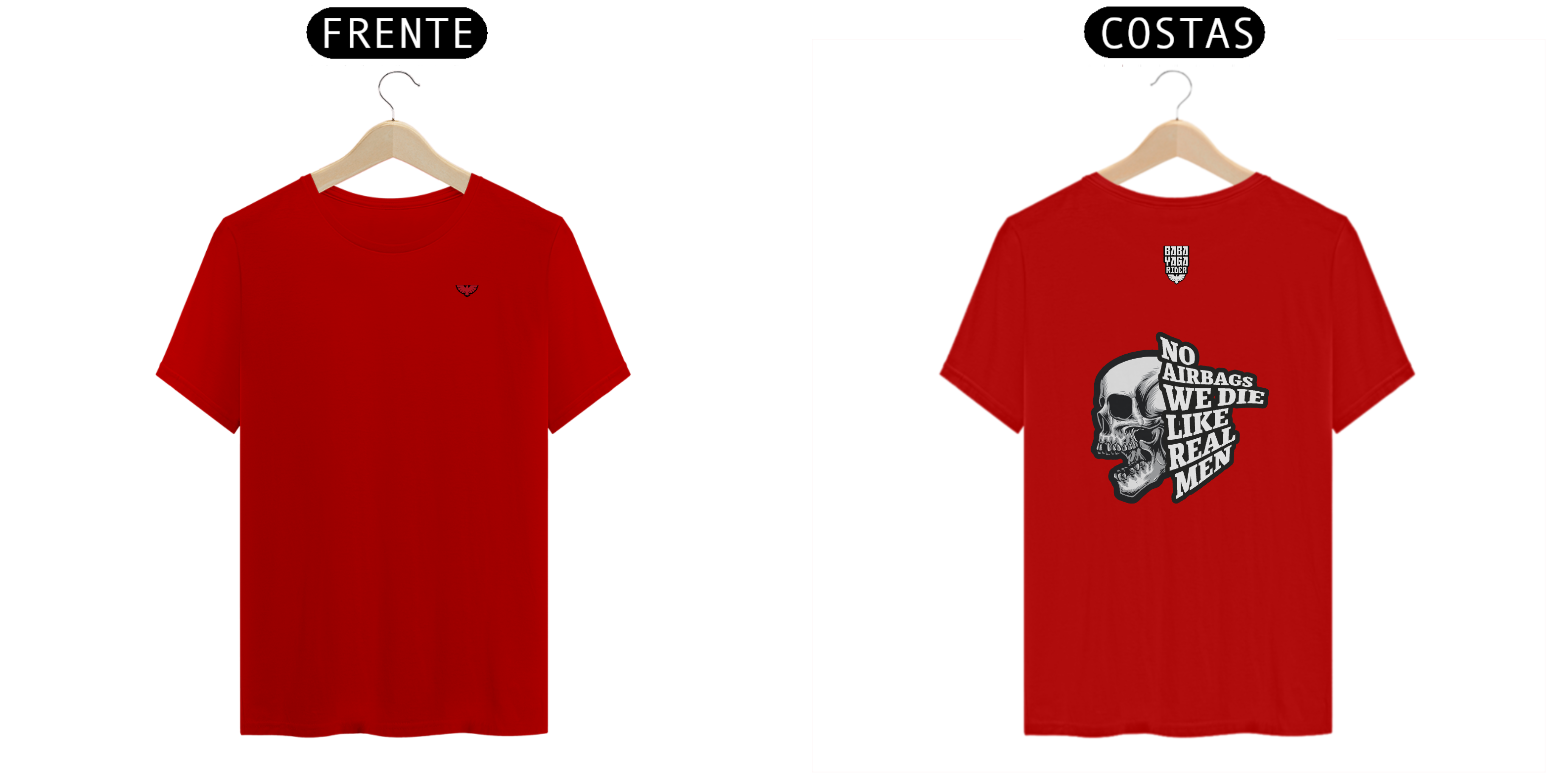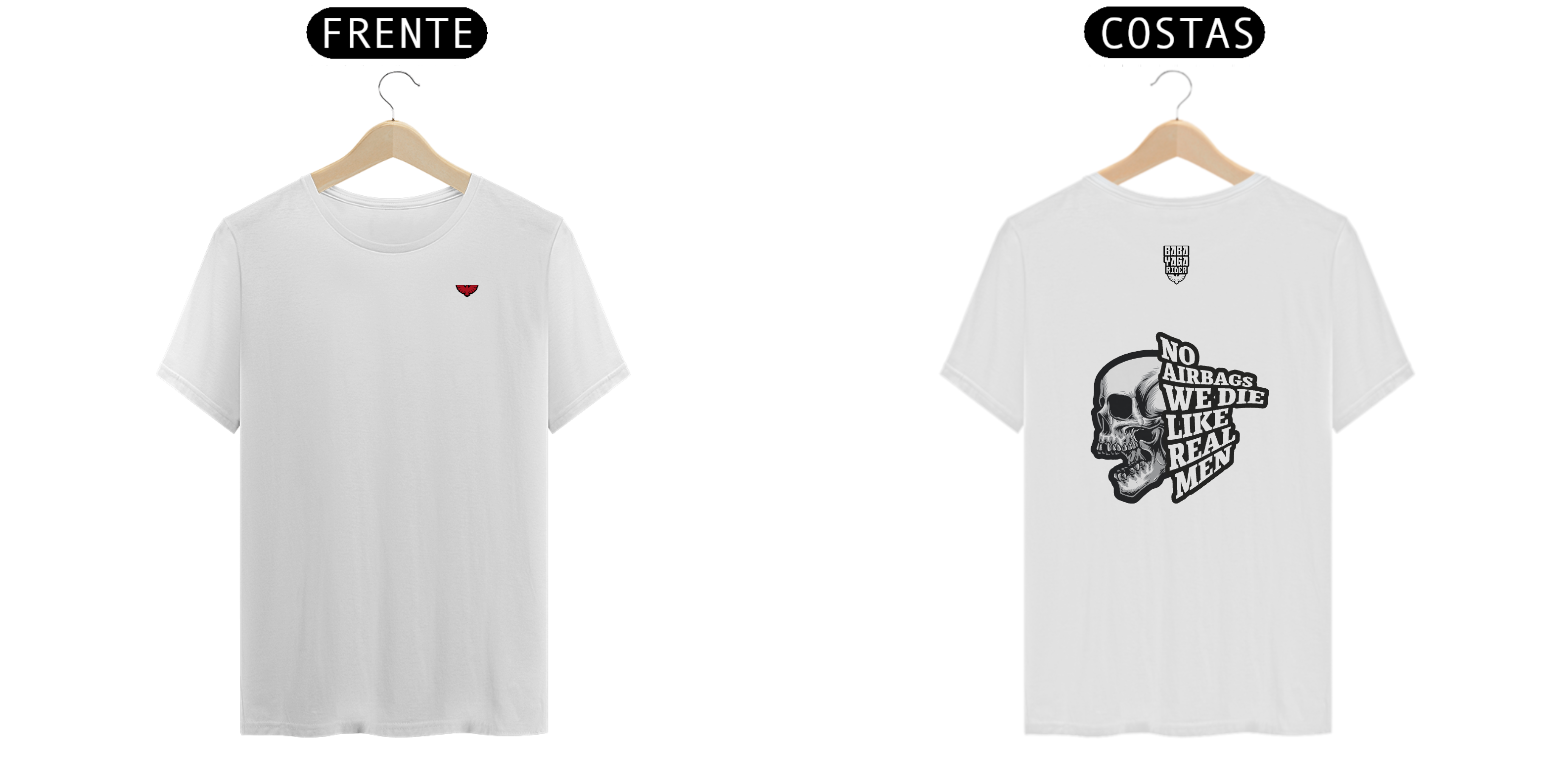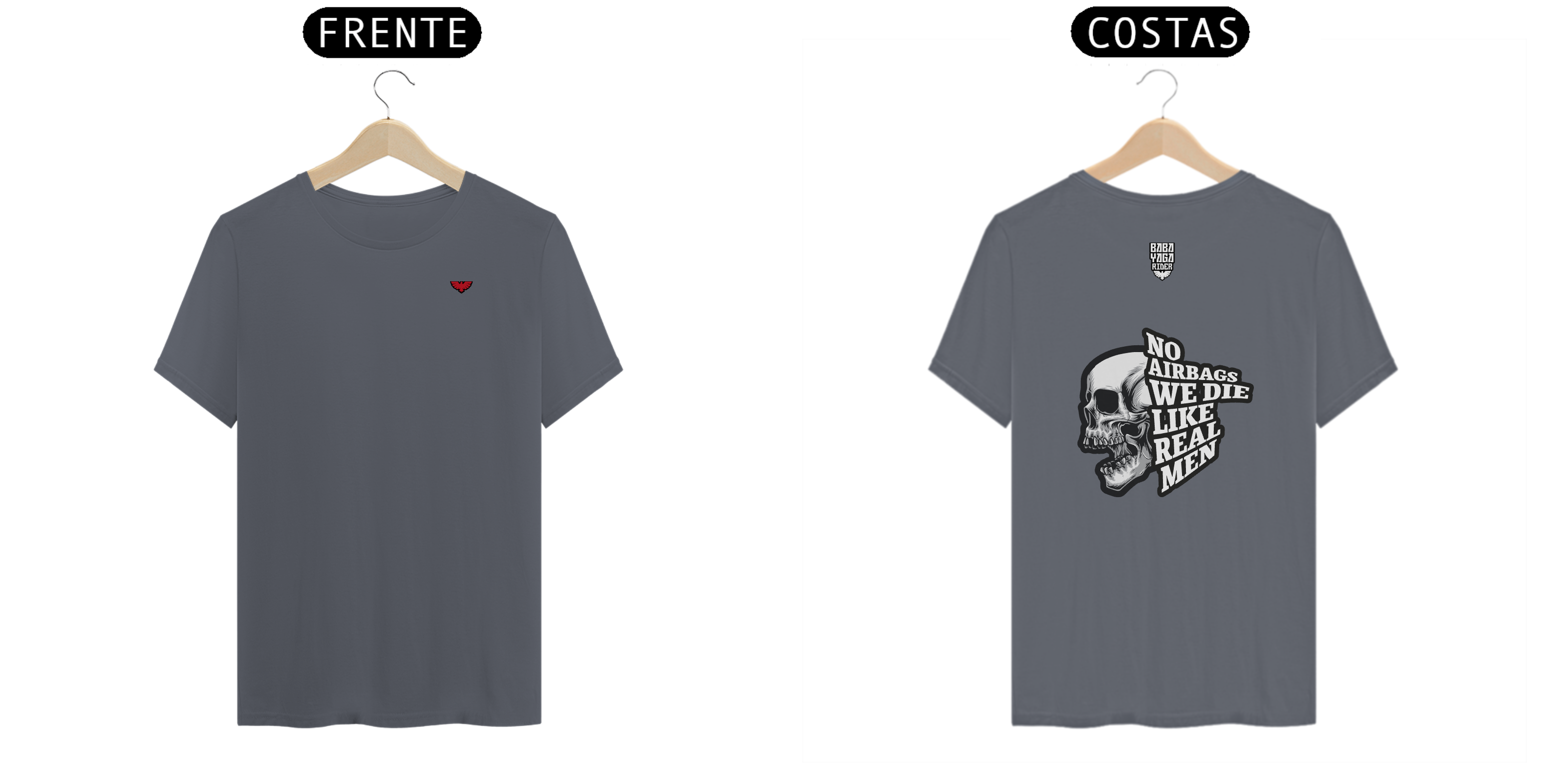 Para os motociclistas de verdade e amantes da estrada que vivem intensamente, esta camiseta expressa o espírito indomável e a bravura dos que escolhem o caminho sem garantias. A estampa impactante com o crânio e o lema "No Airbags, We Die Like Real Men" é um símbolo de força, liberdade, igualdade e autenticidade. Confeccionada em algodão de alta qualidade, essa peça é perfeita para quem quer se destacar com estilo e atitude. Vista seu orgulho de ser parte da cultura biker!
